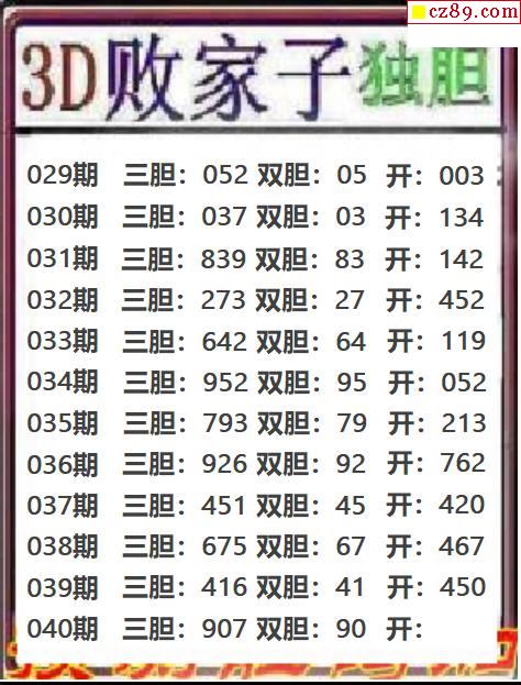 败家子独胆2026040期3d图谜